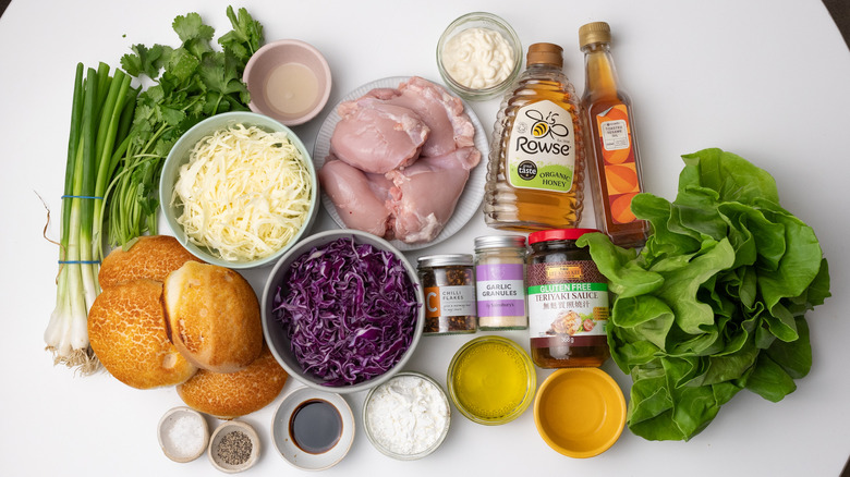 Gather the ingredients for this teriyaki chicken sandwich with Asian-inspired slaw recipe