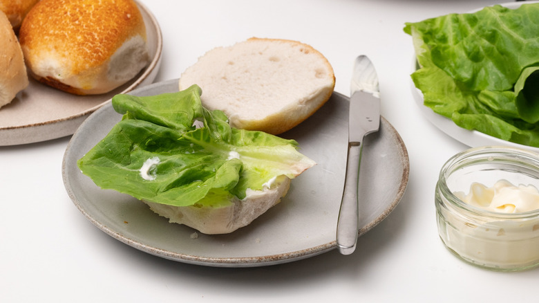 - Spread 1 tablespoon mayonnaise on the base of each sandwich and top with a lettuce leaf.
