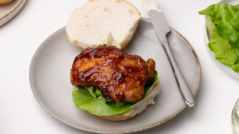 - Transfer a hot teriyaki chicken thigh straight from the pan into each sandwich.