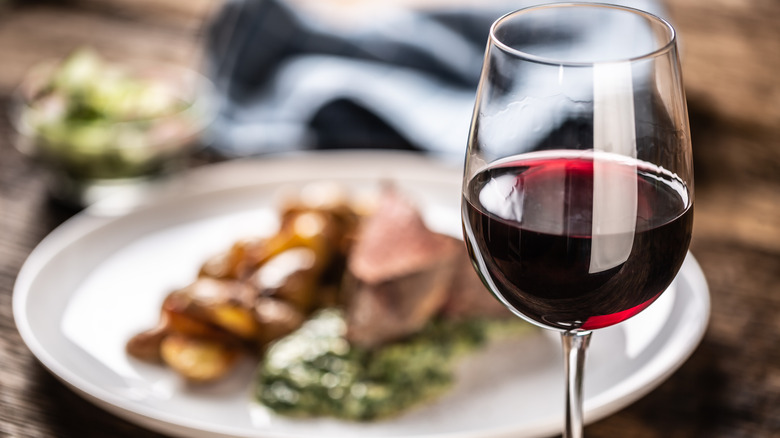 When using red wine for cooking, you'll have to keep its heady flavor in mind. It can easily overpower a dish if you're not careful, so it'll need something to mirror its depth. "Cooking dark meats such as beef, lamb, or duck, red wine or red port is a good go-to. Especially when using stronger herbs like rosemary, sage, or bay leaves," explains Brixton. Milder herbs will get lost in the sauce; stronger herbs, on the other hand, stay more present, preventing you from having to over-season a dish in order to bring an earthy undertone to the food. "The essence of the herbs will come through the boldness of the wine that much more," notes the chef.