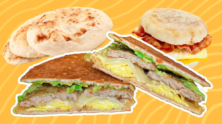 Crucially, a high-quality pita bread that neatly encompasses all the toppings and provides structural support won't compete with the flavors of your fillings. It's a delicious, neutral foundation for all your favorite breakfast munchies. Better yet, if you want to cut back on carbs, simply select a smaller flatbread — you'll be able to successfully use a single pita to mimic the job of two slices of bread.