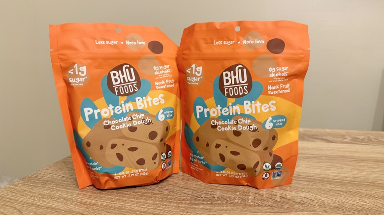 Bhu Foods cookie dough is a sweet treat for those looking to watch their sugar intake, or those following a keto diet. Bhu Foods' protein cookie dough products are unique, in that it is one of the only edible cookie dough brands on the market that comes in bar form in addition to bites and the more traditional jar and tub packaging. I tried the bites, which are made with 4 grams of protein each and less than a gram of sugar. Plus, the package conveniently cases six individually wrapped bites. This product is also vegan and gluten free. But unfortunately, the nutritional value and convenient nature of these bites' packaging are the best parts about this cookie dough.