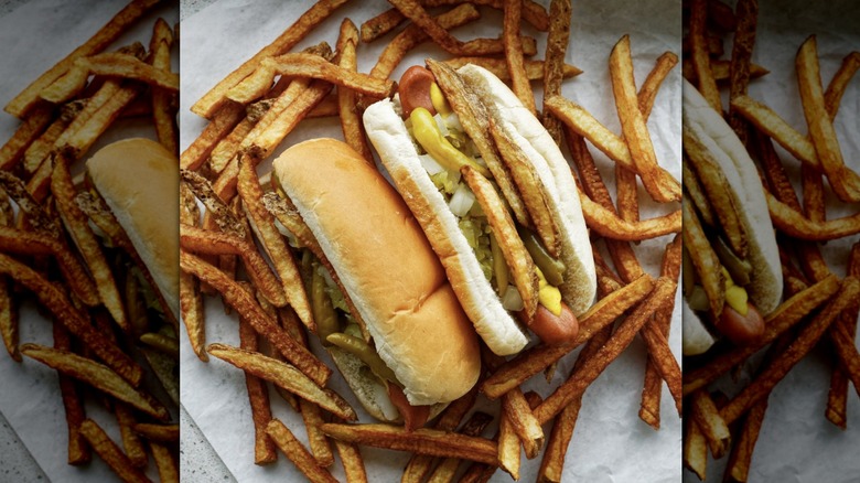 Gene and Jude's was one of the many spots highlighted in the introduction of Season 1 Epsiode 7. While the spot only gets a few seconds of airtime, the fact that it was included hints to how beloved the spot is within the city. Folks flock to Gene and Jude's for its Depression Dogs — a classic red Chicago sausage covered in yellow mustard, white relish white onion, and sports peppers. But, this iconic Chicago spot takes it a step up and covers its weenies in a coating of fries.
