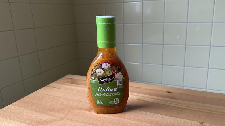 Signature Select's Italian dressing is passable, but it's not something anyone should go out of their way to buy. The flavor is thinner than most of the other brands I tried on this list. It mostly tastes like barely-seasoned oil and vinegar — which means you could probably make a more delicious version of this dressing at home in just a few minutes. Although it's not bad and will get the job done in a pinch, most of the other options on this list taste way, way better.