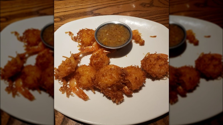 The subtle, tropical sweetness of coconut flakes should be enough to accentuate shrimp's natural flavor, but it seems Outback doesn't think so. The chain's Gold Coast coconut shrimp are absolutely loaded with sugar, so much so that biting into each little morsel feels like sampling snacks from a candy shop. Usually, your taste buds aren't prepared to chow down on a dessert-like treat before dinner has even started, making this sugar-laden appetizer feel like an assault on the senses. Granted, the coconut shrimp's coating is flaky and toasted well, but this does nothing to overshadow the tumultuous tidal wave of syrupy sweetness.