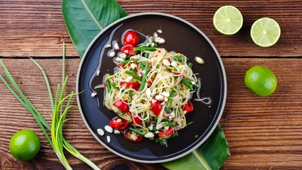If you're looking for a light, refreshing dish, you can't go wrong with som tam Thai. Also known as Thai green papaya salad, this Southeast Asian dish offers a perfect balance of sweetness, savoriness, tanginess, spiciness, and umami that'll both awaken and satiate your taste buds. Its use of fresh ingredients also creates a play of textures that's enjoyable to the palate.