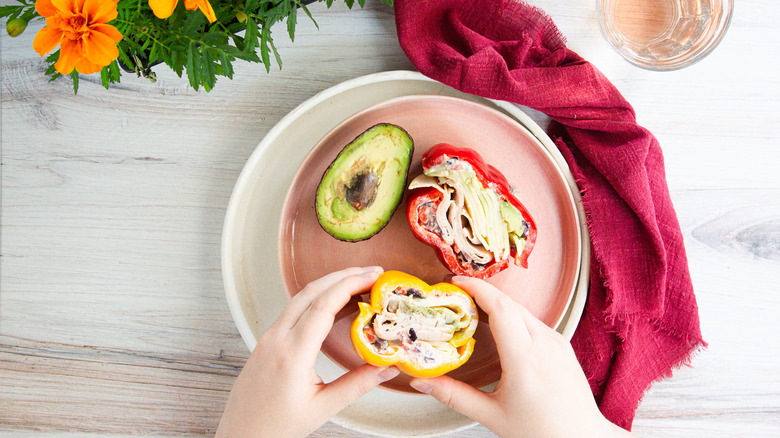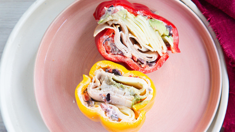 Bell pepper sandwiches have long been a staple in the keto community, as they offer a convenient way to enjoy the flavors of a sandwich without the carbs from bread. According to Ksenia Prints of At the Immigrant's Table, with the addition of an olive-tinged cream cheese spread, these turkey and cheese bell pepper sandwiches become a delicious meal that won't have you reaching for the bread slices.