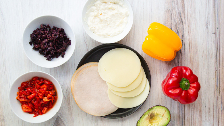 For this easy sandwich recipe, you'll need a few vibrant bell peppers in assorted colors, softened cream cheese, chopped pitted olives, and chopped roasted red peppers. Thinly sliced turkey deli meat and provolone cheese will provide the protein and Italian spirit. Slices of ripe avocado lend a creamy richness to the sandwich, making it feel even more filling.
