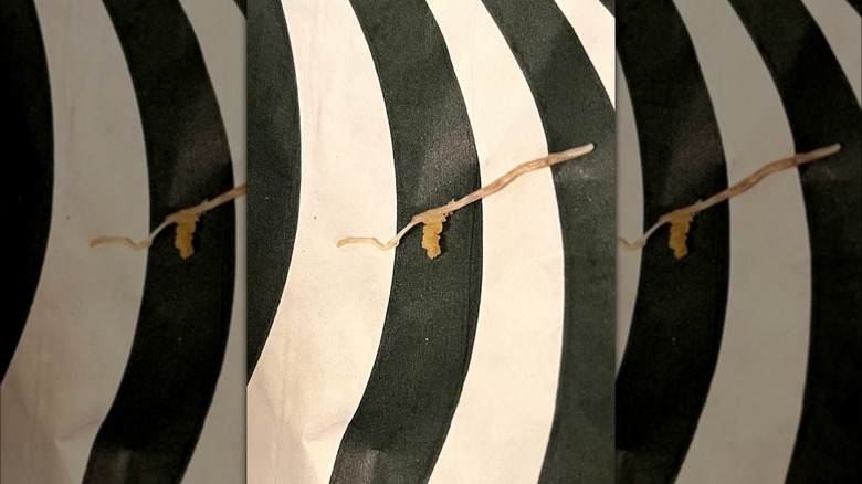 The original Reddit post with a picture of a bone found in the Starbucks Maple Butter Chicken & Egg Sandwich is so far the first and only notice of a major problem with the product, but the previous rollout was quite the debacle, and this finding had a number of commenters wondering if history is repeating itself. When the first chicken sandwich was released, it was hyped as Starbucks' first attempt at chicken, but things quickly went sideways. Customers on TikTok and Reddit made posts complaining about multi-day bouts of diarrhea and vomiting, and if there were any concerns about people online exaggerating, multiple employees at a New England Starbucks also got sick after eating the sandwich. Some other complaints centered around the chicken patty not being fully cooked when customers bit into it.