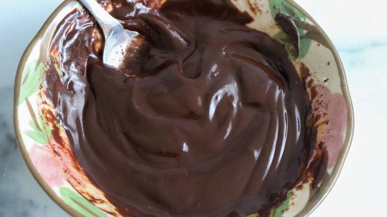 Heat in the microwave in 20 second increments until the chocolate melts. Stir together until the mixture is smooth and shiny.