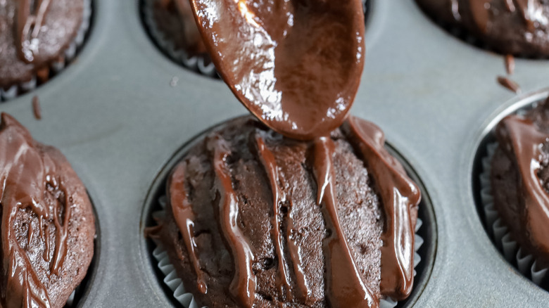 Let the ganache set, then serve the muffins.