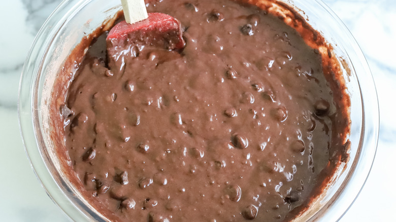 - Add 2 cups of chocolate chips to the batter and mix until combined.