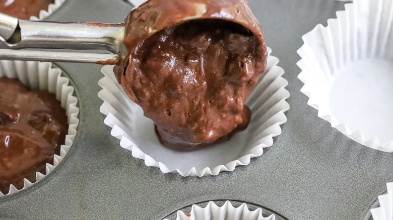 Spoon batter into the prepared muffin tins until each cup is about ⅔ full.