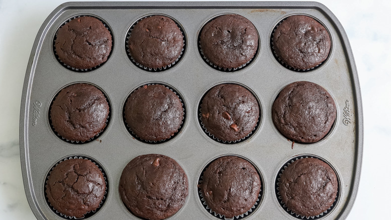 These muffins are the perfect excuse to eat chocolate cake for breakfast, but they can also be a fun snack or a dessert, and moreover, there are lots of great reasons to make these muffins right now. Since they are made mainly with pantry staples, you might be able to make these muffins without any special trips to the store for ingredients. They also take less than 40 minutes to make start to finish, which is always a positive in a recipe. So, no, these death by chocolate muffins won't make you feel like you're dying — in fact, they just might make you feel like you're in heaven instead.