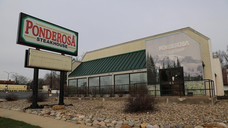 Colonel Mustard in the kitchen with a knife? Nope, that's not who — or more accurately, what — killed Ponderosa Steakhouse restaurants. The demise of the once mighty Western-themed chain resulted from a confluence of events including a growing awareness of food safety issues. When the Centers for Disease Control began tracking incidents of food-borne illnesses in 1970, the link between all-you-can-buffets and the risk of contamination came into sharper focus. It wasn't the death knell, but consumers began to view serve-yourself set-ups with more suspicion than anticipation. It didn't happen immediately — and other factors also came into play — but over the course of a few decades, the appeal of the long-time family favorite began to erode. It's an interesting story of the rise and fall of an American restaurant chain.