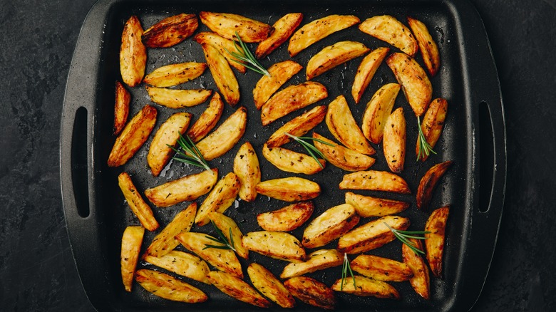 Although coconut oil sounds like a specialty ingredient you might use to make Bananas Foster or some other kind of complicated baked fruit dish, it is actually quite versatile and can be employed in everyday cooking. Next time you whip up a batch of french fries in your air fryer or oven, use refined coconut oil. It has a smoke point of 400 degrees Fahrenheit, and its rich, fatty flavor only adds to the experience. Because refined coconut oil has a neutral flavor, your fries won't taste tropical. Instead, you can focus on the flavor of the potato and any seasoning you might add.
