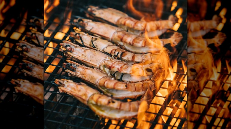 But since there's so much shrimp all piled on top of each other, the chef says it "might be a longer cooking affair." This is because depending on where the shrimp are in the pile, it might take longer for the flames to reach them. So, Hemsley says the best thing to do is put the shrimp in the basket and "just kind of let it sit and kind of jostle it" as needed. That way, the shrimp will shift around inside and get a more even cook all around. If you're unsure of which basket to get, Hemsley suggests Made In, the company they use at his restaurant. "They have some really great carbon steel items that are grill ready," he says.