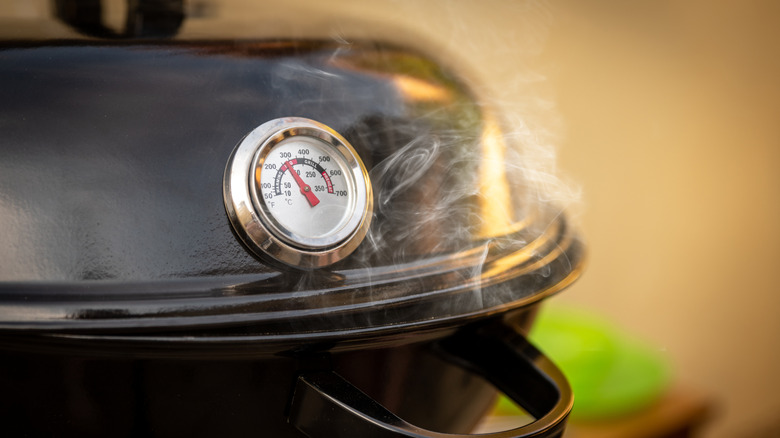 While you should always have a thermometer handy to make sure that your protein is the right temperature when it comes off the grill, you also want to make sure that your grill is at the right temperatures when you start cooking. Thankfully, these days most grills come with a thermometer built right in the cover so you know exactly how hot it is under the hood. The optimal temperature depends on what you're cooking. Hemsley says that if you're smoke cooking something, you should keep it at a "relatively low temperature." "But when you're dealing with shellfish," the chef explains, "you want to develop a really nice foundation of coals that's evenly dispersed a couple inches away from the grill line so you don't light your shellfish on fire if it's marinated in a fat like an oil."