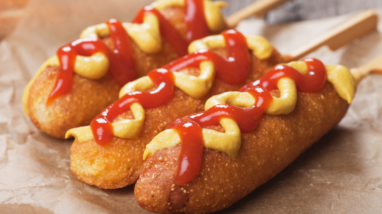 I would be remiss not to score corn dogs at the top of this fair food list. While you can get these deep fried treats from school cafeterias and the grocery store's freezer aisle, there's nothing like wielding one at your state fair.