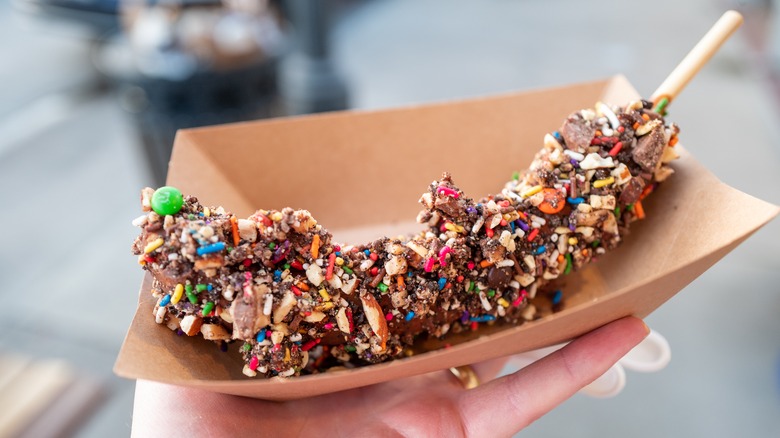 Frozen bananas seem to be a dying fair food, and honestly, I couldn't be more disappointed about it. I'm a lover of these banana treats for several reasons (beyond the references in the beloved series, "Arrested Development"), the main one being that frozen bananas are more resistant to melting than plain ice cream. It's why the frozen fruits are perfect for blistering hot fair days, when it hurts to sit on the metal seat of the Ferris Wheel.