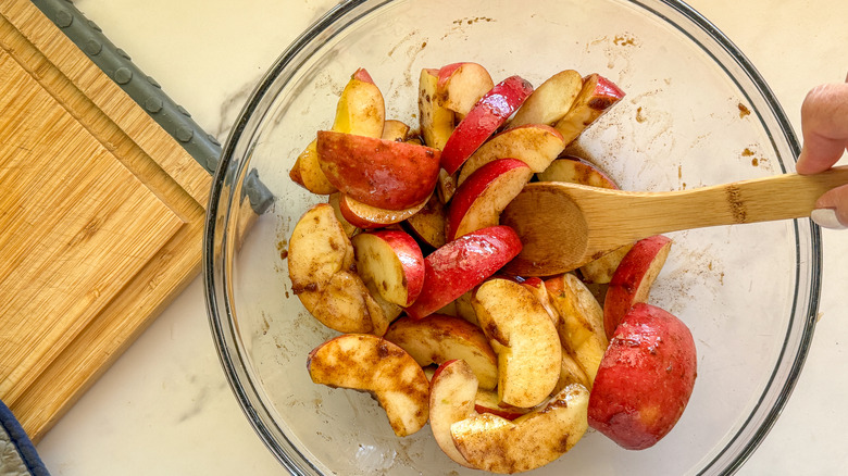 Step 4: Add this mixture to the apples