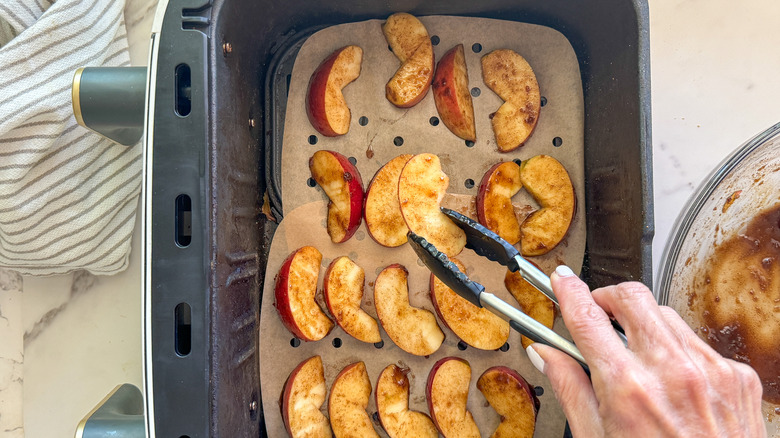 Lay the apples in a single layer in the air fryer basket. You may have to work in batches.