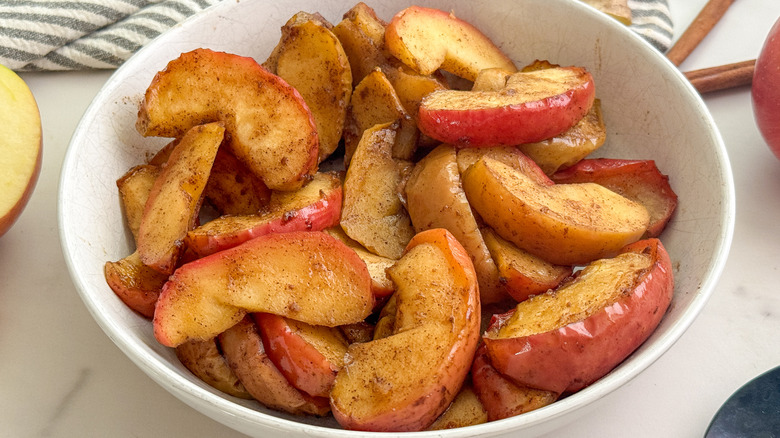 If you have a slow cooker, this will also work. Place all of the ingredients into the slow cooker and stir well. Then, set the slow cooker to high and cook for 2–3 hours, or cook on low for 4–5 hours. If you're short on time and want to enjoy these apples, pull out a microwave dish and combine all of the ingredients. Then, cook on high for 8–10 minutes.