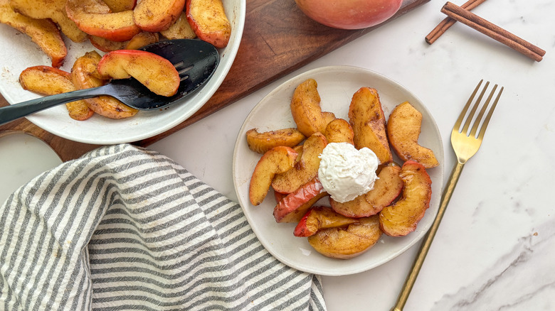 - Serve the apples, topped with whipped cream or vanilla ice cream, if desired.