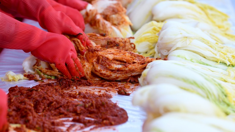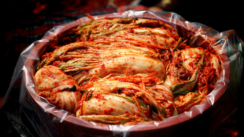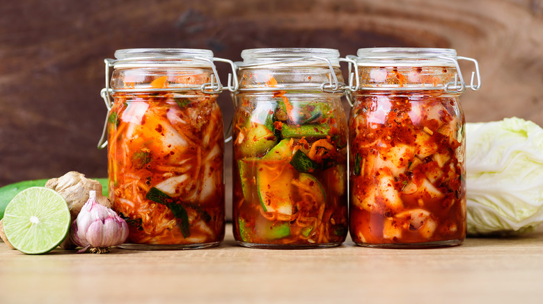 Fermented foods are having a big moment right now, and that means there is no better time to learn what separates two of the most popular options out there: kimchi and sauerkraut. The rise in popularity for fermented foods goes hand-in-hand with the growing attention to things like gut health and microbiomes, but they have been an essential part of the human diet for thousands of years. Not only fermented vegetables but foods like yogurt and miso are integral parts of diets around the globe to this day, and while they may have first been valued for fermentation's ability to preserve food, and then for their health benefits, they also happen to be delicious. Very few foods endure the way that kimchi and sauerkraut have if they don't taste good, after all.
