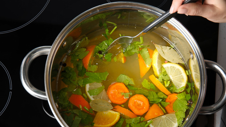 Like other recipes on this list, you should begin by thoroughly washing your peel and removing the white pith. Slice the peel into strips and place it in a clean jar or bottle. Pour in the vodka or tequila, ensuring the grapefruit is fully submerged. For the peel of one large grapefruit, you'll need around 3 cups of vodka or tequila. Seal the jar tightly and store it in a cool, dark place. Allow the mixture to infuse for three to seven days, shaking the jar gently once a day to mix the flavors. Taste it every so often, and once it reaches your desired strength and flavor, strain the liquid through a fine mesh sieve or cheesecloth to remove the grapefruit peels and any pulp. Transfer the infused vodka or tequila back into its original bottle or another clean bottle for storage.