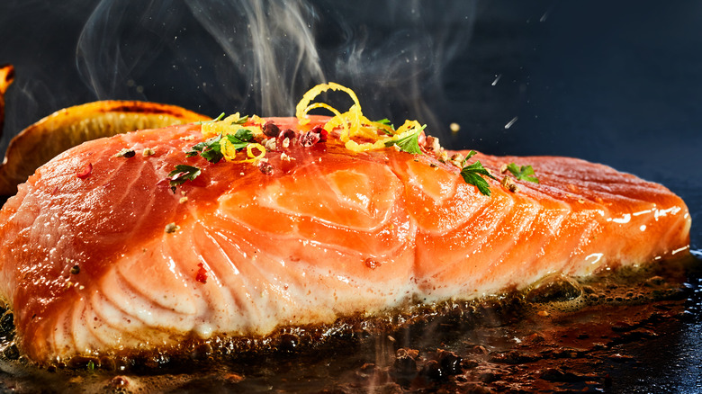 In food traditions around the world, citrus and seafood have found each other. They have undeniable chemistry — literally, in some cases. When you add lemon to ceviche, the citrus acid denatures the proteins of the fish, turning it firm and opaque. For other types of seafood, citrus brightens the flavors and provides a refreshing contrast to the oily textures. It also helps neutralize the brinier or "fishier" flavors. This makes grapefruit peel zest an excellent addition to seafood dishes, as it provides a uniquely tangy and slightly bitter flavor.