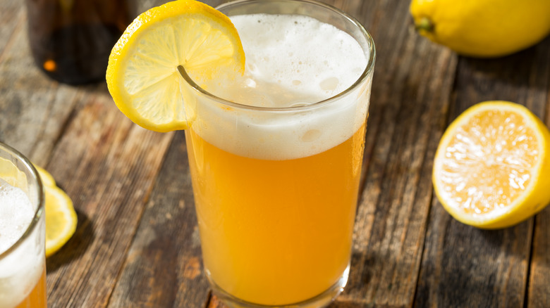 If you've ever had a shandy before, you know exactly how delicious beer and lemonade are together. The lack of carbonation in the lemonade does soften the drink's effervescence somewhat but it's not that big of a deal. Worst case scenario you can add some more beer to up the bubbly. Full disclosure, a shandy is made differently depending on what part of the world you happen to be drinking in. Some places use lemon-lime soda like Sprite while others use ginger beer. But in the United States, lemonade is the typical ingredient for shandies.