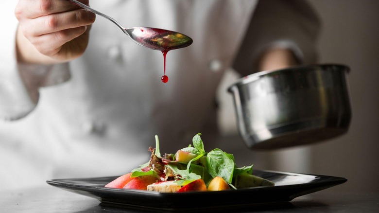 Reverence for ingredients and overall flavor are paramount, of course, but the visual component requires just as much attention to detail. Out come the much-lampooned, but ever-useful, tweezers to pluck blossoms and gently lean herb sprigs over a perfectly cooked piece of fish. For those without a culinary background, this fussiness may seem silly, but it's a culinary maxim that we first feast with our eyes. In fact, there are many plating tricks that can even elevate your own meals at home.