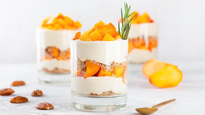 Naturally, the cream part is taken care of by an ice cream base, while pieces of puff pastry act as the additional ingredients to create a true millefoglie gelato. You may also find chocolate shards in this flavor, though they aren't required. If you want to try making this at home, start by mixing together milk, cream, sugar, and your own crushed bits of cooked puff pastry, then run it through an ice cream machine. Serve the product with berries or top it with chocolate sauce.