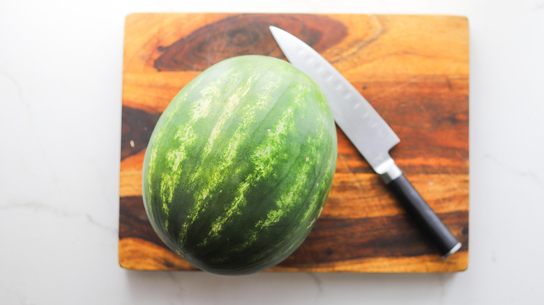 There are tons of excellent ways to consume watermelon, from salads to desserts. Before you can make something amazing with watermelon, whether it's a fun new recipe or this agua fresca drink, you have to choose a good watermelon. The internet is rife with tips, tricks, and techniques for choosing a perfectly ripe melon that's sweet without having a mealy texture. Do any of these methods actually work?
