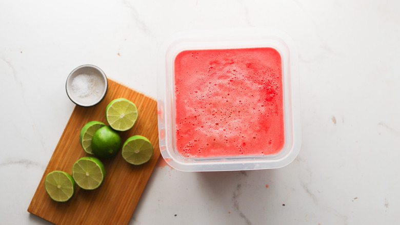 - Juice the limes into the blended watermelon and (optionally) add a pinch of salt.