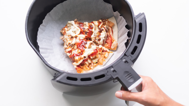 Pizza is one of those rare dishes that can truly feed a crowd — and a picky crowd, at that. If pizza were to have one flaw, it's the way it never tastes the same as it does fresh from the oven. And, sure, cold pizza is scientifically delicious, but it's still a much different eating experience than a steaming hot 'za fresh from the box. Enter the beloved air fryer, America's favorite kitchen appliance. If you, like so many others, invested in a handy air fryer for your home, then you've also invested in the perfect gadget for restoring leftover pizza to its original glory with the crispiest crust possible.
