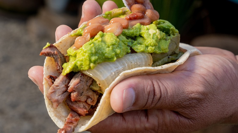 Not unlike with fajitas, these tacos pack meat, peppers, and other vegetables all in one bite. Picado's traditional ingredients include peppers, tomatoes, onions, and garlic — all of which pair quite deliciously on a corn (or flour) tortilla with your go-to taco toppings. Even better, you can cook down the vegetables and steak pieces in one pot for less clean-up. That means it's also easy to make a large quantity to feed a crowd — and you can reserve some of the peppers and onions for those who want a vegetarian option. The steak is cut into small pieces, so the meat is already the ideal size for filling tacos. And to keep it traditional, cook cactus pads, or Nopalitos, to serve alongside the dish to impress the dinner guests.