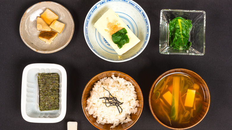 Breakfast looks quite different around the world. In Japan, there's a traditional format to what's served for this meal, and much like other cuisine on the island, it's deftly balanced. The food follows a common dining format called ichiju sansai, which means that there's a bowl of rice, soup, and three other accompanying dishes. Most popularly, these entail a starch option (usually a bowl of white rice), miso soup, the fermented bean dish natto, some sort of pickled vegetable, and a small serving of fish.