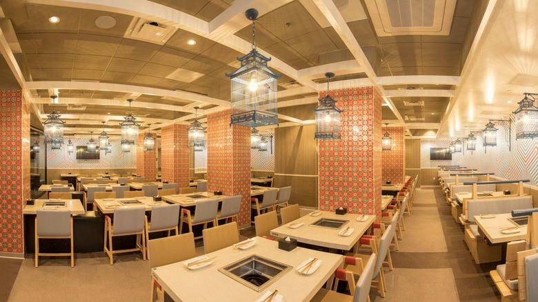 The first Haidilao restaurant opened in the United States northeast of downtown Los Angeles in Arcadia. Since its arrival in 2013, over a dozen other American locations have welcomed customers eager to slurp down steaming bowls filled with vegetables and protein-packed broth. At the Los Angeles restaurant, Haidilao rests on a 12,500 square-foot plot and serves up the expected Sichuan hot pot accoutrements to visitors. Customers are treated to not only the many delicious dishes, but can play board games as they wait for their food to cook or marvel at employees dexterously stretching noodles as part of regular performances. While you're waiting for your table, fruit and hot tea is held in containers for visitors, and instant packages of noodles are stacked for those who don't have the patience to wait and want to grab food to go.