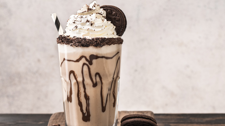 Sometimes a dollop of whipped cream and a cherry on top are all you need when making an ice cream float. However, there's a way to give your decadent dessert an even better finishing touch — one it deserves. This finishing touch involves the glass itself because you'll be giving it a makeover with a nifty cookie rim that looks and tastes great.