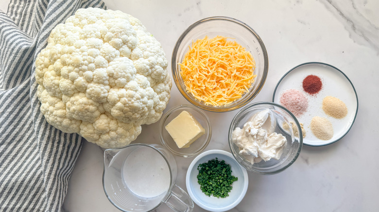 Gather the ingredients for slow cooker keto cauliflower mac and cheese