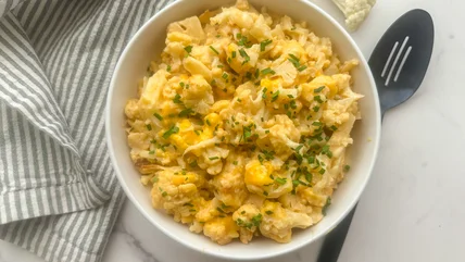 This version skips the pasta, subs in cauliflower, a cruciferous superfood, and pairs it with sharp and salty cheese, rich butter, and tangy cream cheese. With potent spices like dry mustard and paprika, as well as garlic and onion granules, this simple recipe has layers of flavor to go with the satisfying cheesy texture. The cauliflower softens as it cooks, giving you a pasta-like consistency that blends with the melted cheese mixture to perfectly recreate your favorite mac and cheese in keto form.