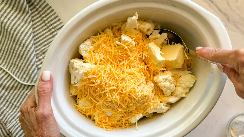 - Add the cauliflower to the slow cooker.