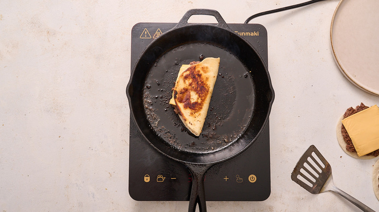 Flip the taco half and brown the other side for about 30 seconds.
