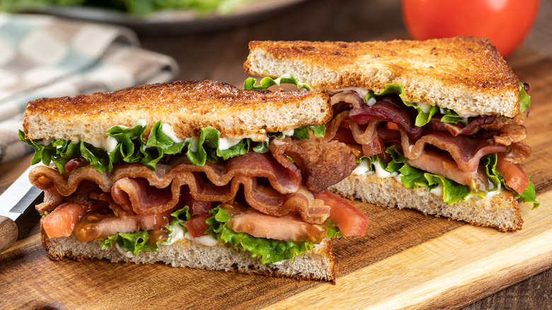 The key to making a good BLT, especially one that's going to be paired with punchy tomato soup, is to be sure you're heavy-handed with adding flavors. Using an applewood-smoked or peppercorn-crusted bacon, for example, will bring unique flavors to the forefront that can play off the seasonings in your soup. You can also use roasted tomatoes for both your soup and the sandwich; they have a less juicy, more mature flavor and are a great segue into the dishes for people who aren't big fans of raw tomato.