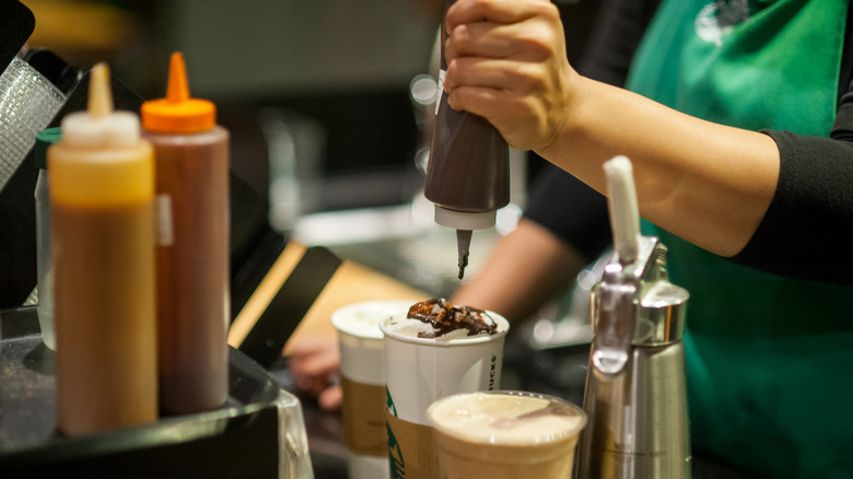 None of Starbucks' other powders are sugar-free — including the matcha powder, the chocolate malt powder, and the vanilla bean powder — nor are most of its regular syrups — be it the classic, simple syrup, the strawberry sauce, the peppermint syrup, or the pumpkin spice. Because you can't be sure how the sugar in any of Starbucks' recipes is processed, the only vegan-friendly drinks would have to be those made with its sole sugar-free syrup: vanilla. Starbucks used to have more sugar-free syrups, including a sugar-free cinnamon dolce, skinny mocha sauce, peppermint, caramel, chai, and hazelnut. But, today, only the sugar-free vanilla remains.