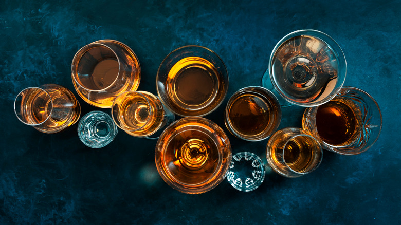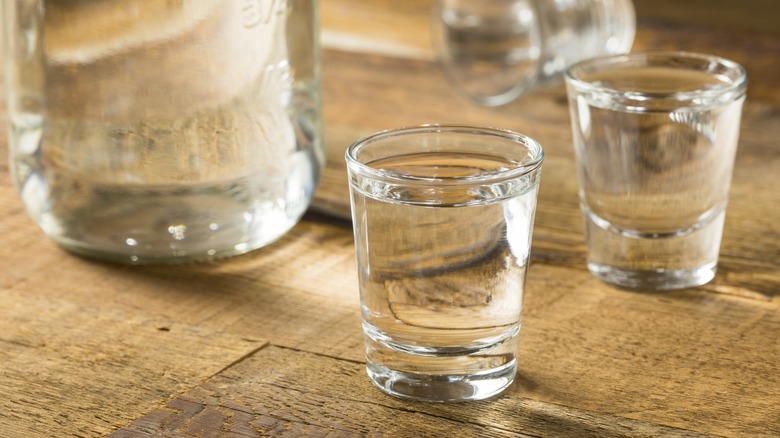 There are also additional differences between moonshine and bourbon. While bourbon can't have any additives other than water, moonshine often incorporates fruit, botanicals, or other flavors to enhance its flavor and make the raw, unaged, and often harsh spirit more palatable. Moonshine, while often made from corn, is sometimes made from other grains, fruit, or even sugar. Moonshine also doesn't have the same proof limitations — distilled to no more than 160 proof — that bourbon has and often comes out at a higher proof. That said, moonshine and bourbon still have an awful lot in common.