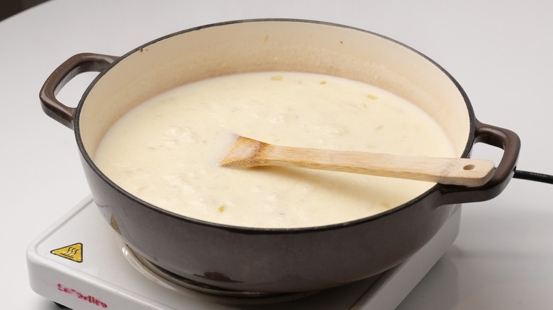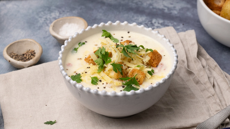 One of the great things about soup is how easily adaptable it is as a dish. Whether you want to change it up a little to suit your own personal preferences, tweak it to make it suitable for specific dietary needs, or heap in the veggies to give it a real vitamin boost, such changes are easily made. To make this soup recipe more of a meal, why not add some diced potatoes and carrots to the mix? As well as giving it a starchy boost, you'll add some nutrients and lightness to the soup. Green vegetables also make an excellent addition, adding a burst of color and breaking up the richness and creaminess of the dish. Spinach, green beans, kale, or even leeks make excellent choices, pairing well with the other flavors in the dish.