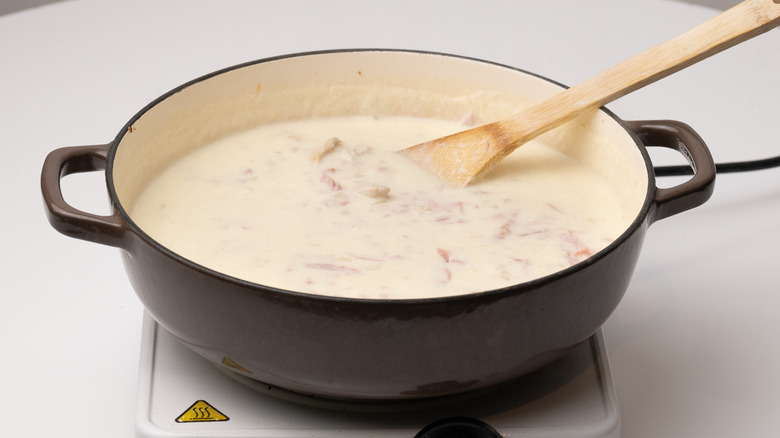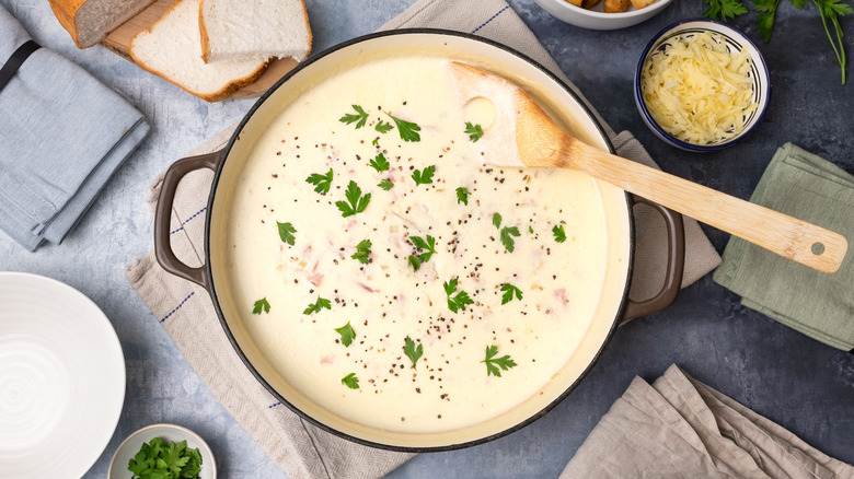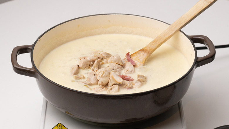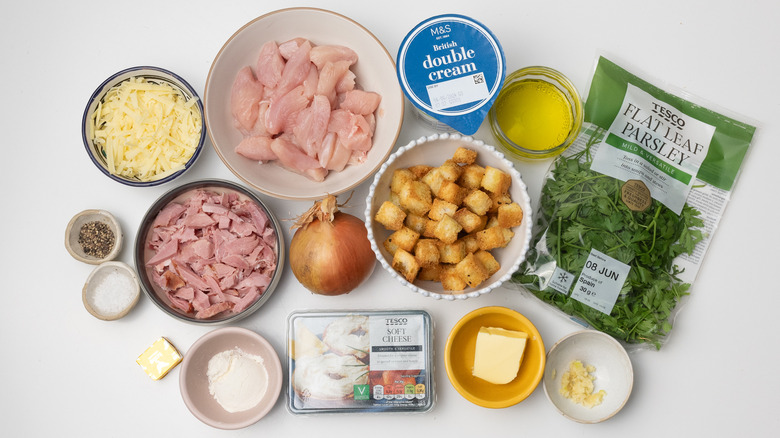 Gather the ingredients for rich and creamy chicken cordon bleu soup